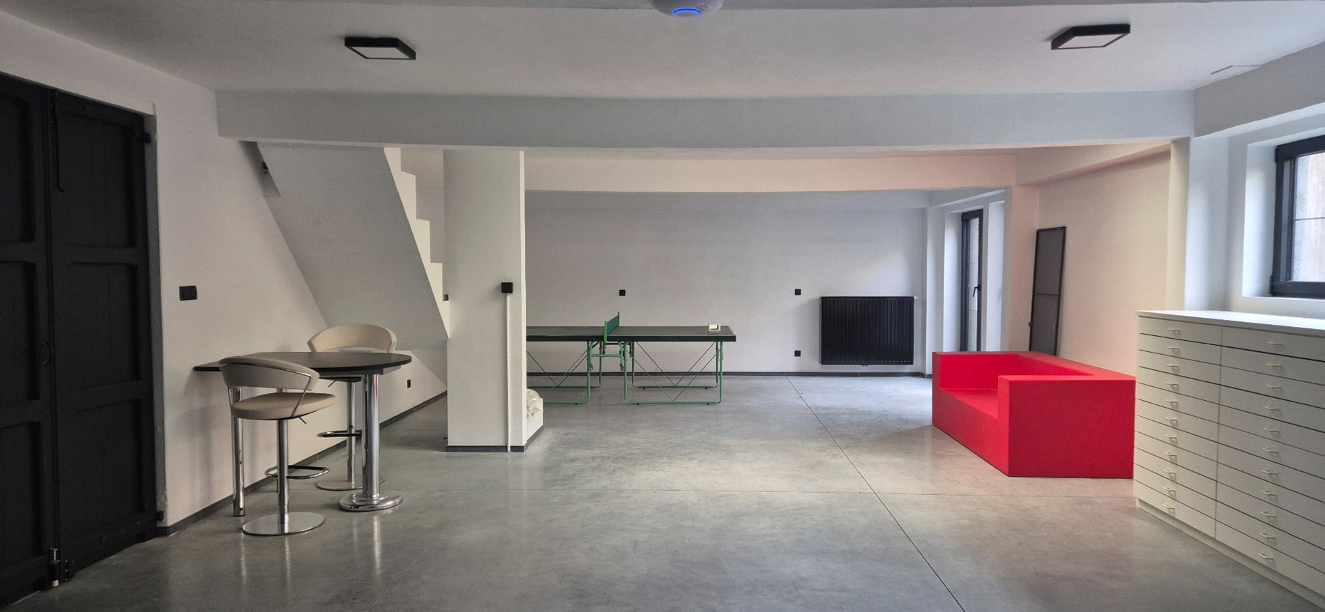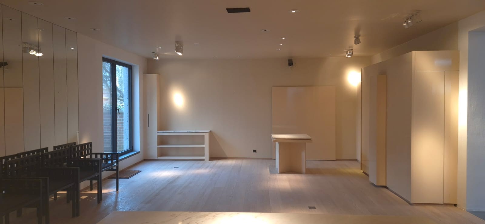 - Open en flexibele indeling, geschikt voor meerdere werkposten of vergaderruimtes.