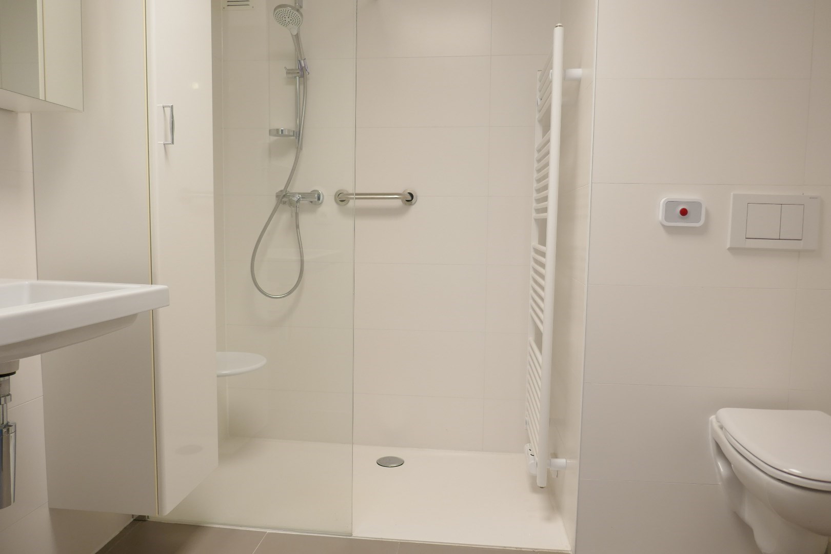 De flat is vlot bereikbaar met de lift en beschikt over een zongericht terras met elektrische zonnewering. Daarnaast is er een gemeenschappelijke tuin en een groot terras op het gelijkvloers.