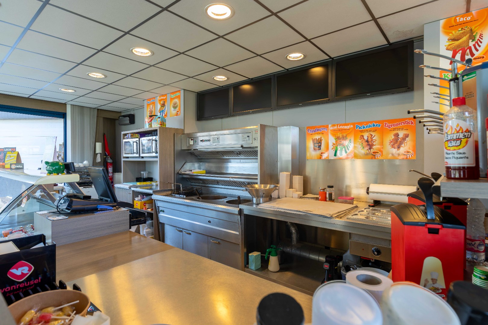 Deze goed draaiende frituur ligt op een opvallende hoek, vlak bij de Damse Vaart. Makkelijk bereikbaar, met een ruime parking en een gezellig terras — ideaal voor vaste klanten én toevallige passanten.