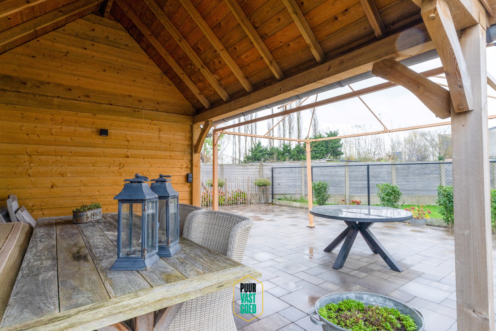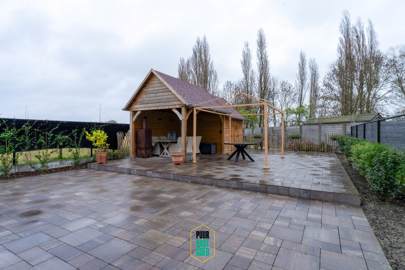 Buiten: Groot terras, met bijgebouw met loungehoek en onderhoudsvriendelijke plantentuin.